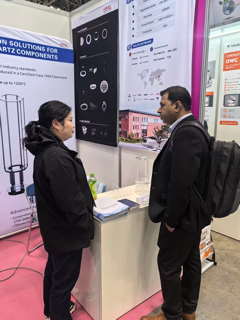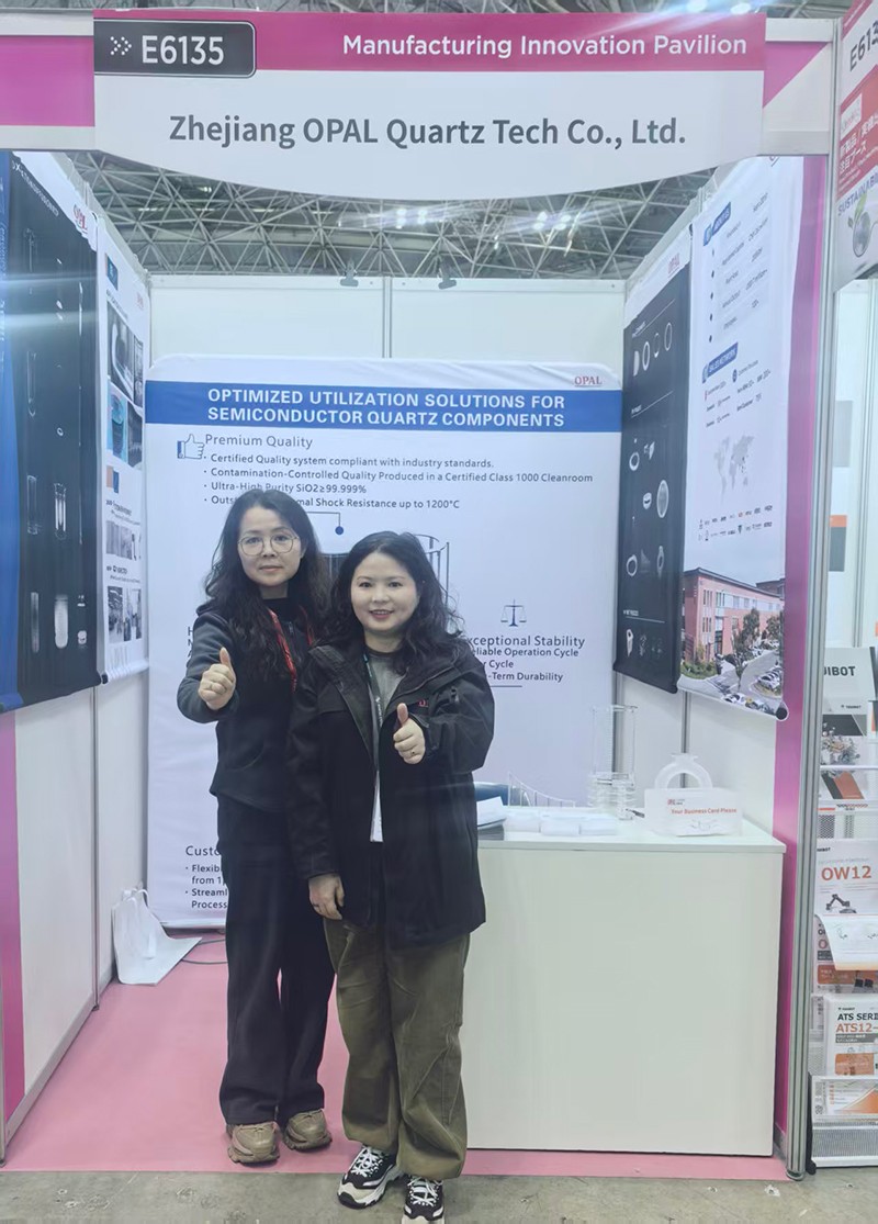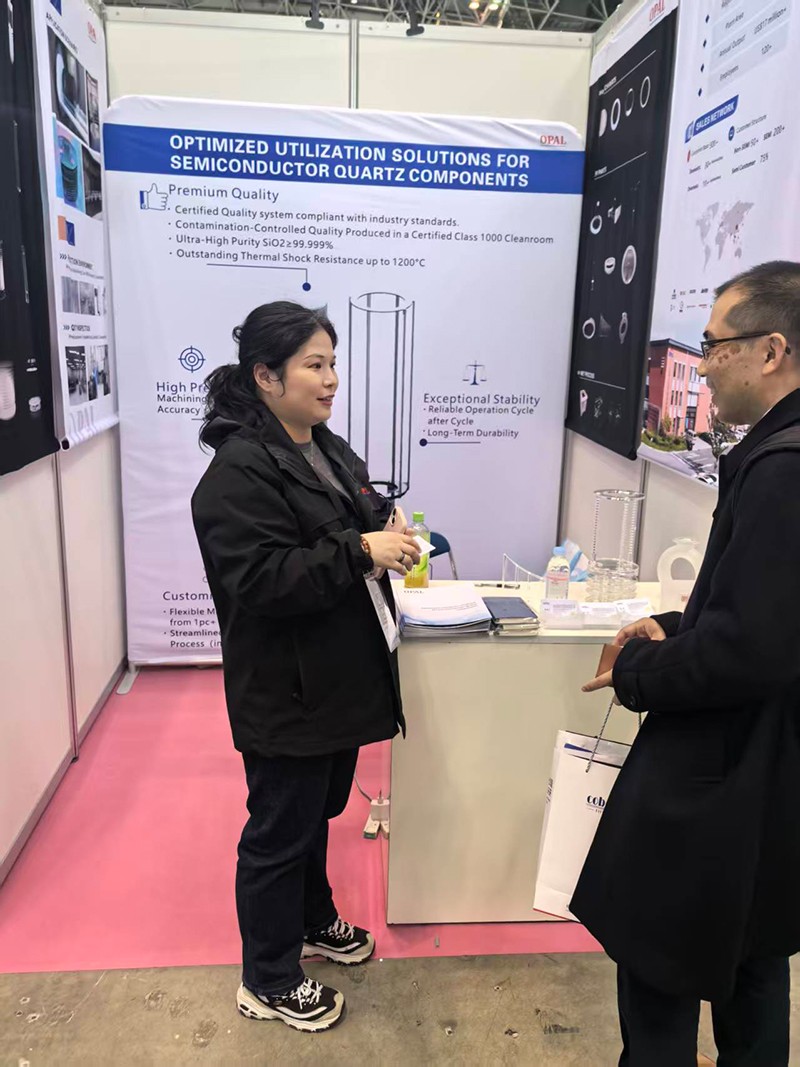 本次展会汇集了全球超过1200家半导体产业链相关企业。奥博石英在展会上展示了适用于半导体制造设备与工艺的石英材料及精密器件产品,覆盖晶圆制造与处理、工艺材料等相关领域。